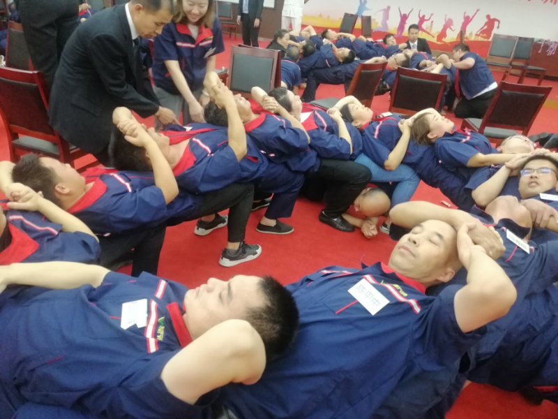 特訓(xùn)營分為六個小組,每個小組均選出一名董事長一名總經(jīng)理,分享學(xué)習(xí)和團(tuán)隊(duì)競賽始終相伴。在八月三十日晚上搭梯子的比賽中,要求每個團(tuán)隊(duì)的十幾個組員,搭成一個圓形的人梯,并且不能倒下。三分鐘、五分鐘、十分鐘、二十分鐘,沒有一個小組倒下,沒有一個小組叫停,充分展現(xiàn)了每一個團(tuán)隊(duì)的團(tuán)隊(duì)協(xié)作,永不放棄的精神。