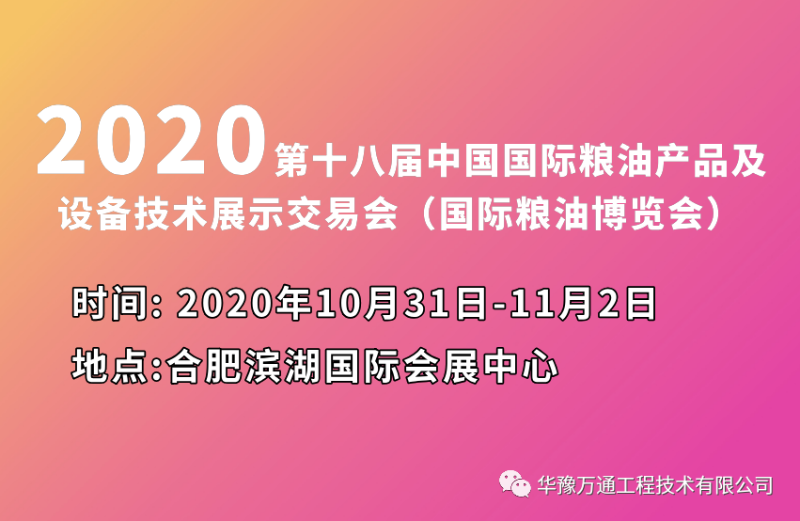 2020年10月31日,合肥濱湖國際會展中心,華豫萬通誠邀您蒞臨展位,了解華豫萬通新雜糧設(shè)備,探討雜糧加工工藝,共襄盛舉。華豫萬通作為糧機設(shè)備展區(qū)重點企業(yè),本次將攜帶多款新研發(fā)設(shè)備亮相展會。